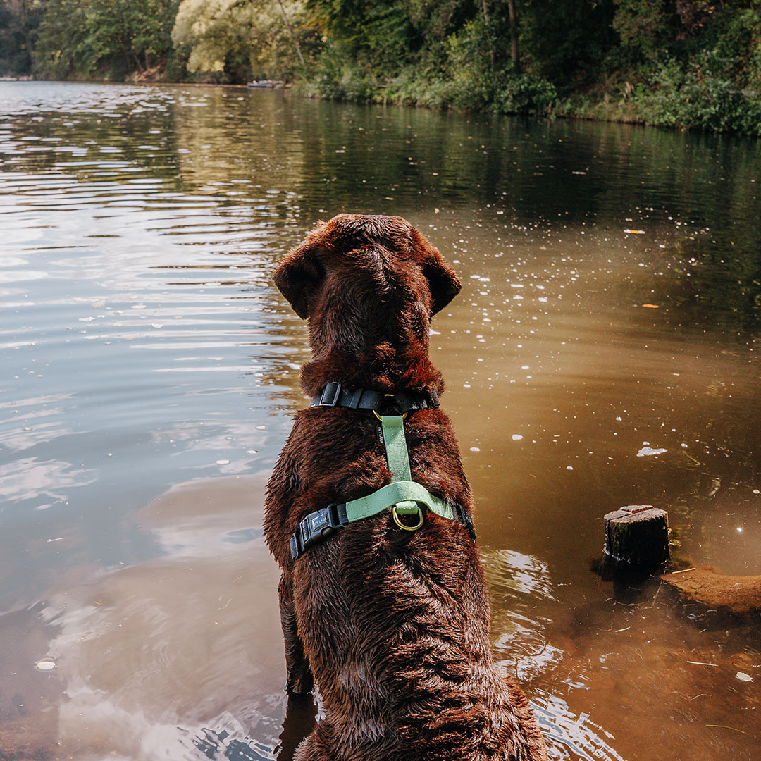 - Pay attention to material compatibility: carabiners made of zinc alloys can lead to wear or discoloration on contact with brass rings on the harness. These are visible but harmless to the dog.