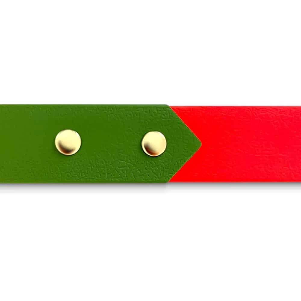 Das Halsband besteht aus zwei verschiedenen Farben, die harmonisch miteinander kombiniert sind und deinem Hund einen einzigartigen Look verleihen. Die knalligen Farben sorgen dafür, dass er aus der Menge heraussticht!